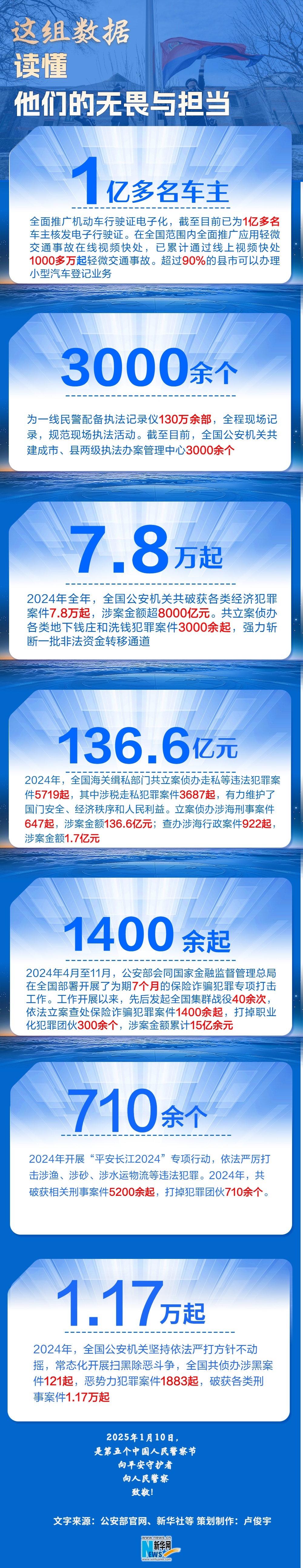 新華社北京1月10日電(記者 熊豐)為深入學習貫徹習近平總書記關于新時代公安工作的重要論述,大力選樹宣傳在公安基層一線涌現出的先進典型,推動全社會形成見賢思齊、崇尚英雄、爭做先鋒的良好氛圍,廣泛凝聚建設平安中國的力量,在第5個中國人民警察節到來之際,中央宣傳部、公安部向全社會發布了2024“最美基層民警”先進事跡。