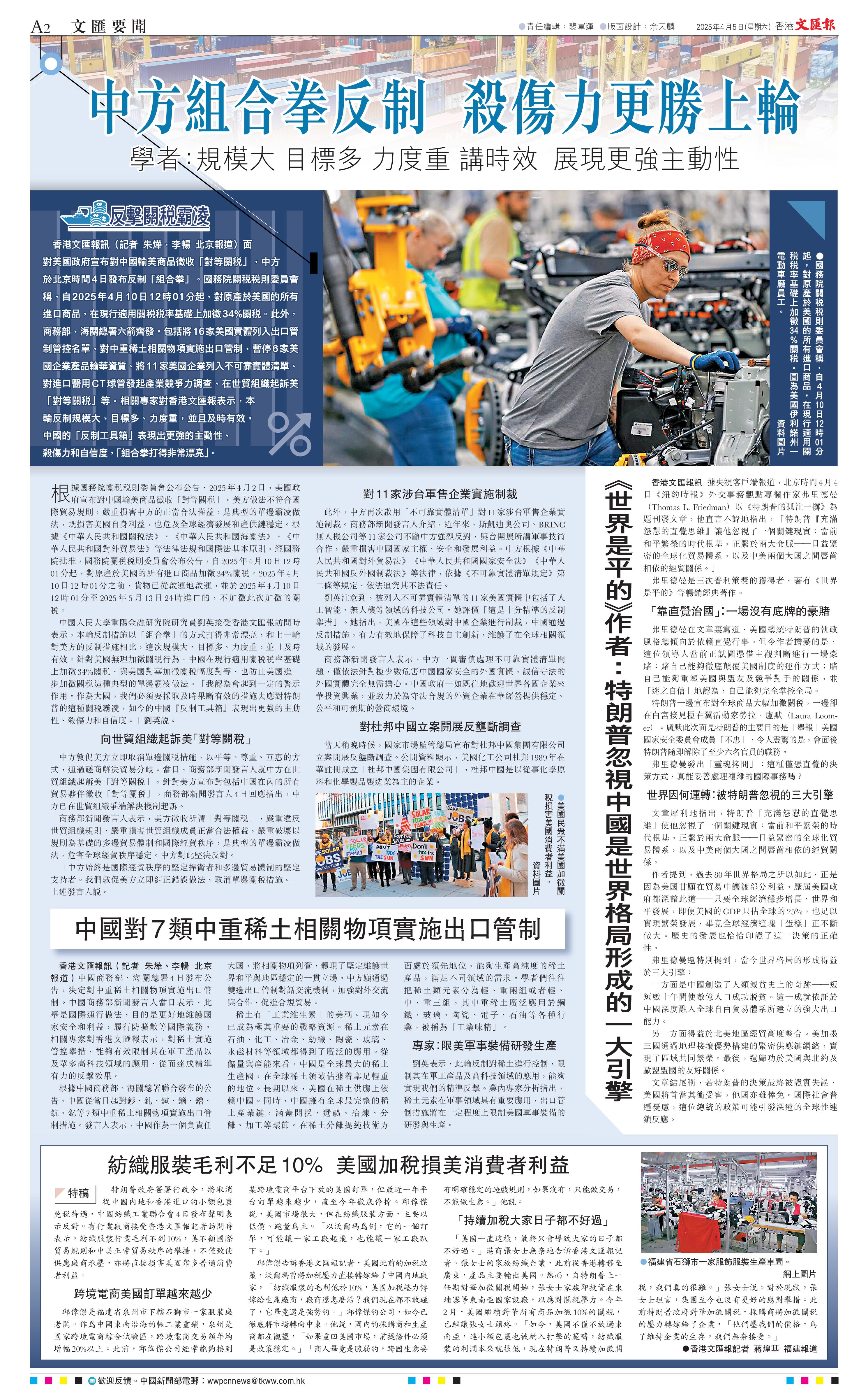 香港文匯報訊據央視客戶端報道,北京時間4月4日《紐約時報》外交事務觀點專欄作家弗里德曼(Thomas L. Friedman)以《特朗普的孤注一擲》為題刊發文章,他直言不諱地指出,「特朗普『充滿怨懟的直覺思維』讓他忽視了一個關鍵現實:當前和平繁榮的時代根基,正系于兩大命脈——日益緊密的全球化貿易體系,以及中美兩個大國之間唇齒相依的經貿關系。」