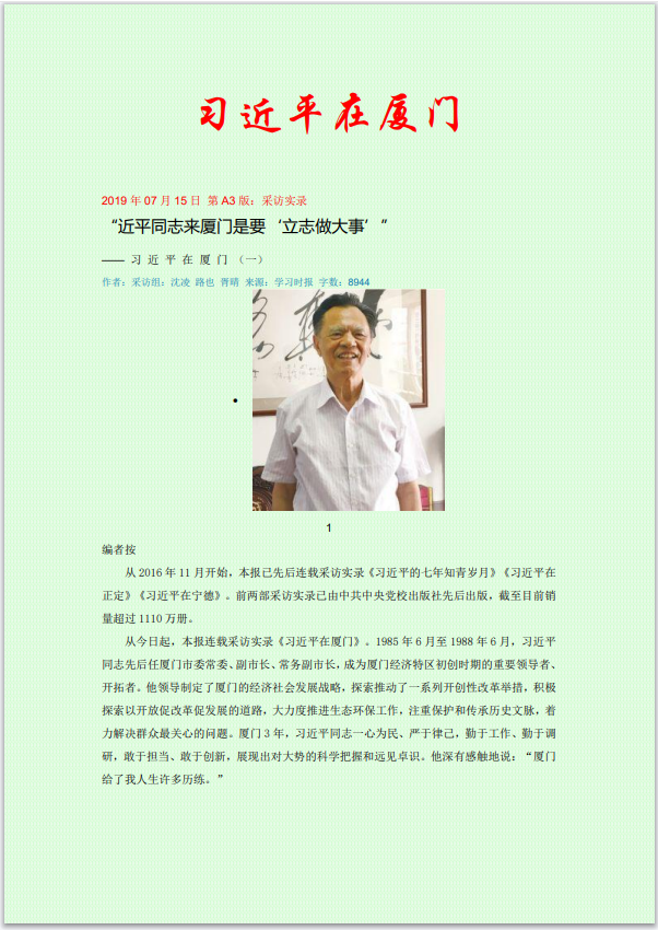 當年,習近平同志領導編制的《1985年—2000年廈門經濟社會發展戰略》,以前瞻性的戰略眼光指明廈門永續發展之路,成為中國地方政府最早編制的一個縱跨十五年的經濟社會發展戰略規劃。