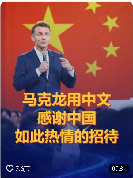 “我深信,中國(guó)與法國(guó)都是有著偉大文明的國(guó)家,其根基正是相互尊重、相互理解,正是友誼與熱愛(ài)。”馬克龍說(shuō)。