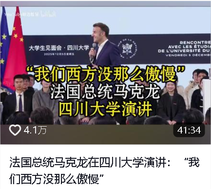5日下午,馬克龍?jiān)L問(wèn)四川大學(xué)。近年來(lái),四川大學(xué)與法國(guó)多所高校建立并深化合作伙伴關(guān)系,該校主要合作伙伴包括法國(guó)巴黎政治學(xué)院、巴黎第十大學(xué)、法國(guó)圖盧茲大學(xué)和法國(guó)國(guó)立東方語(yǔ)言文化學(xué)院等,簽署合作協(xié)議近20份。