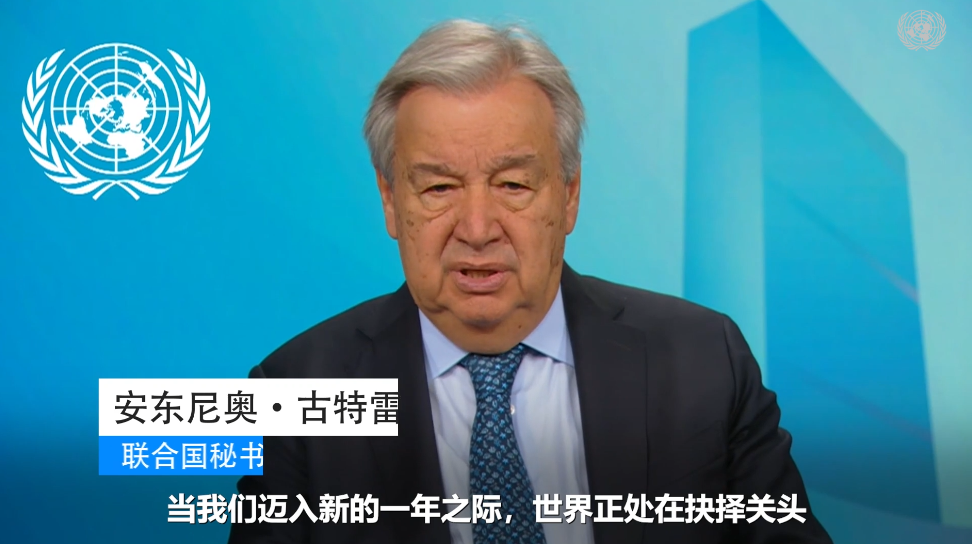 古特雷斯說,新的一年到來之際,世界正處在抉擇關(guān)頭。混亂與不確定性籠罩全球。撕裂、暴力、氣候危機(jī)、全面違反國際法的行徑不斷發(fā)生。將人類大家庭凝聚在一起的基本原則出現(xiàn)倒退。