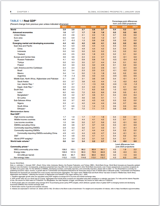 新華社紐約1月13日電(記者徐靜)世界銀行13日發布最新一期《全球經濟展望》報告,將2026年全球經濟增長預期上調至2.6%,比2025年6月預測值高出0.2個百分點。