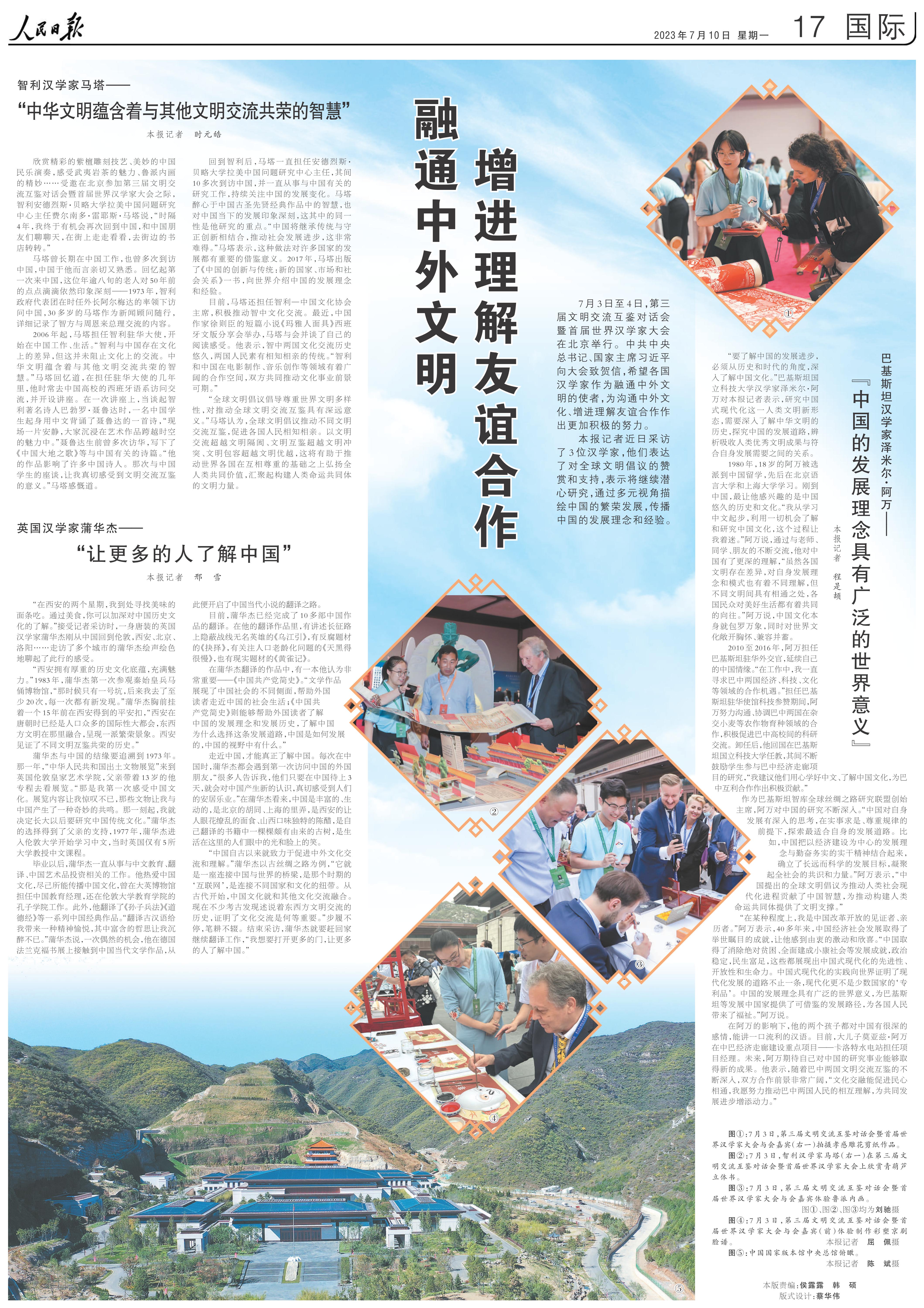 本報記者近日采訪了3位漢學家,他們表達了對全球文明倡議的贊賞和支持,表示將繼續潛心研究,通過多元視角描繪中國的繁榮發展,傳播中國的發展理念和經驗。