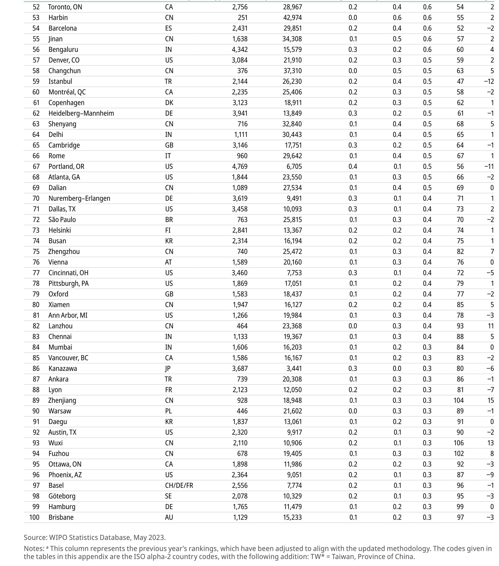 當地時間9月27日,世界知識產權組織(WIPO)在瑞士公布《2023年全球創新指數》(下稱“GII”)。2023年GII使用了80個指標跟蹤130多個經濟體的全球創新趨勢。GII顯示,瑞士、瑞典、美國、英國和新加坡是2023年全球最具創新力的經濟體;中國是GII前30名中唯一的中等收入經濟體,排名第12位。成都本次排名全球第24位(國內第9位)。