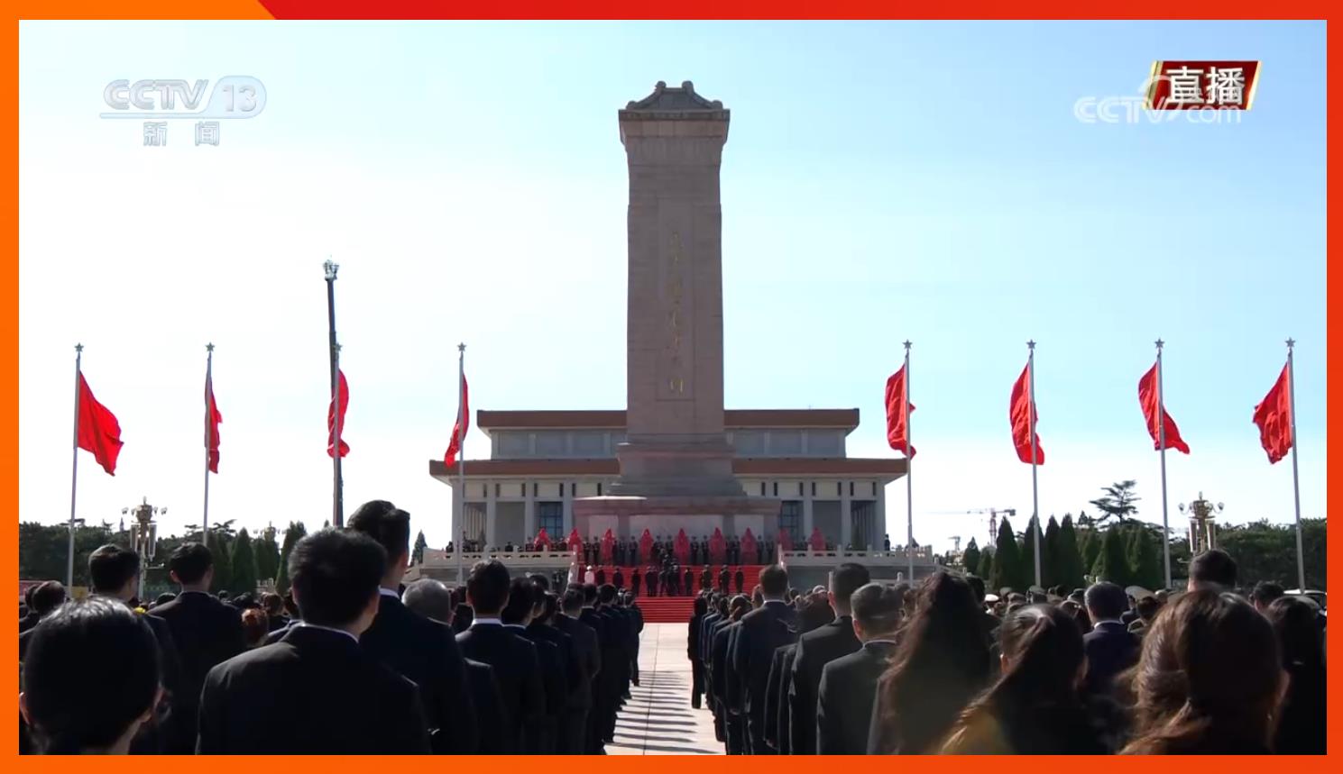 習(xí)近平邁步上前,仔細(xì)整理花籃緞帶。隨后,習(xí)近平等黨和國(guó)家領(lǐng)導(dǎo)人緩步繞行,瞻仰人民英雄紀(jì)念碑。