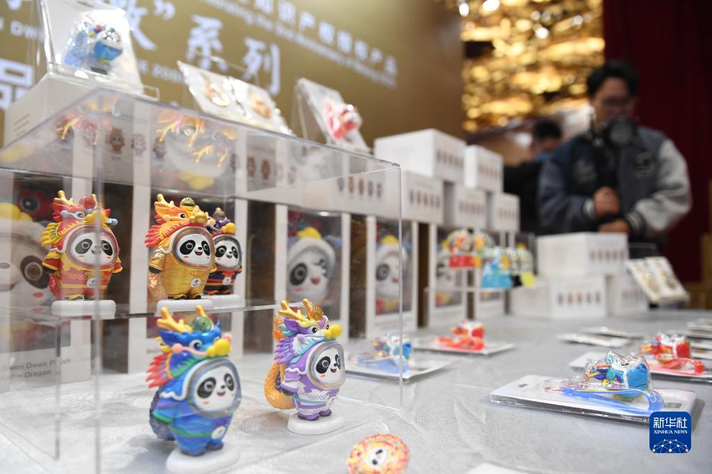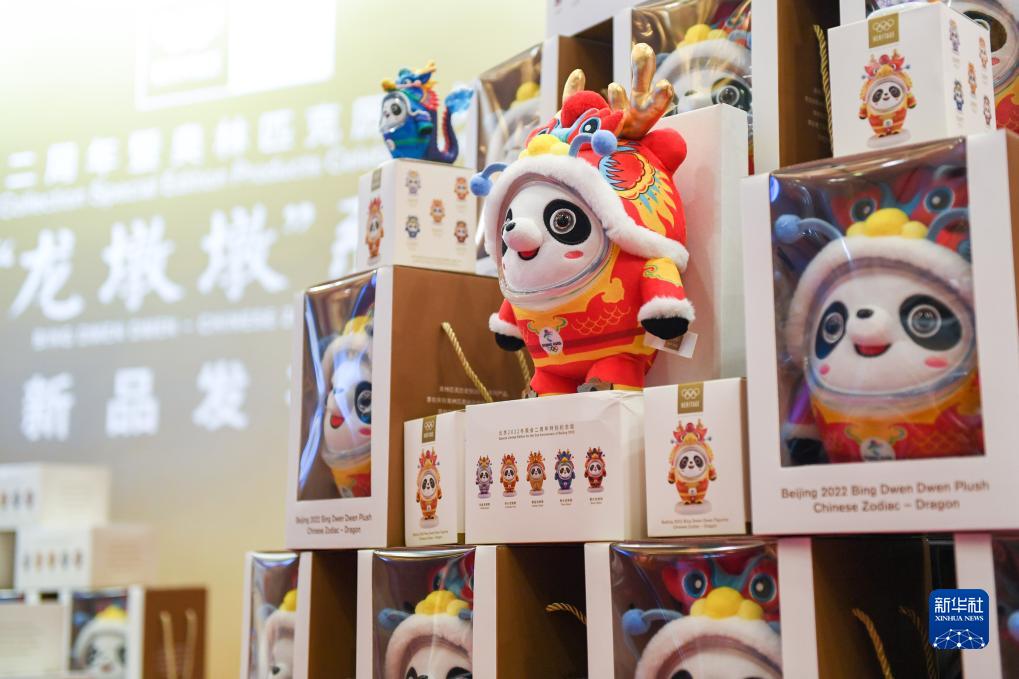 這是11月29日拍攝的“龍墩墩”系列新品。當日,“冰墩墩”龍年新春特別版——“龍墩墩”系列新品在國家體育場金色大廳正式發布。“龍墩墩”作為奧林匹克歷史知識產權再次授權開發的文創產品,延續了中國春節文化、生肖文化特色,成為弘揚奧林匹克精神、創新發展中國文化的典型范例。新華社記者 鞠煥宗 攝