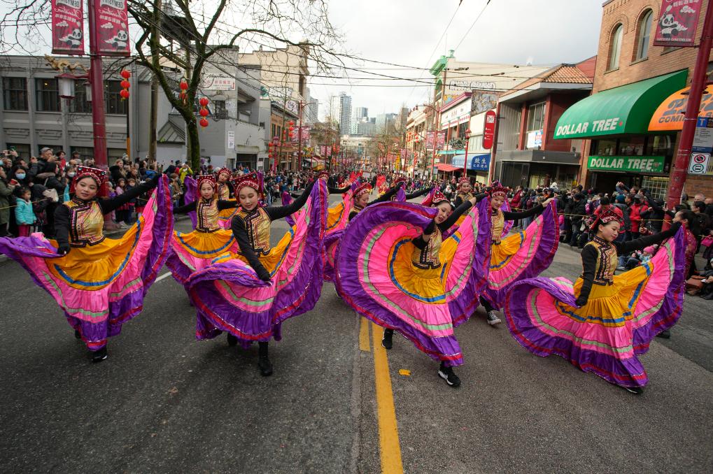1月22日,加拿大溫哥華唐人街舉行第48屆春節大巡游,吸引數萬民眾到場觀看,共同慶祝兔年新春佳節。新華社發(梁森攝)