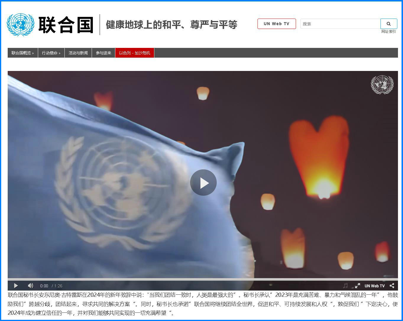 辭舊迎新之際,聯合國秘書長古特雷斯發表新年致辭,呼吁全球團結起來,使2024年成為“建立信任和重燃希望”的一年。