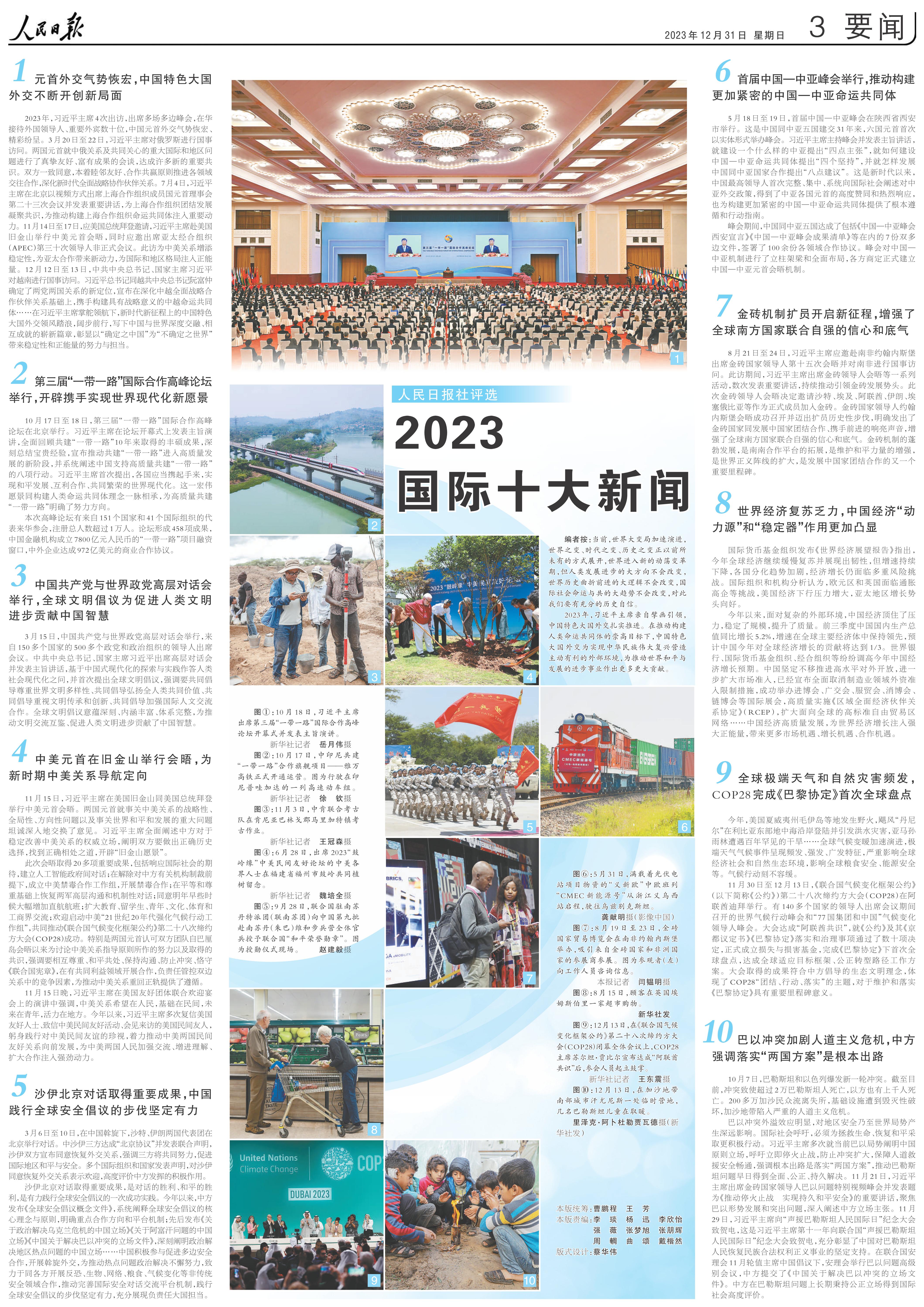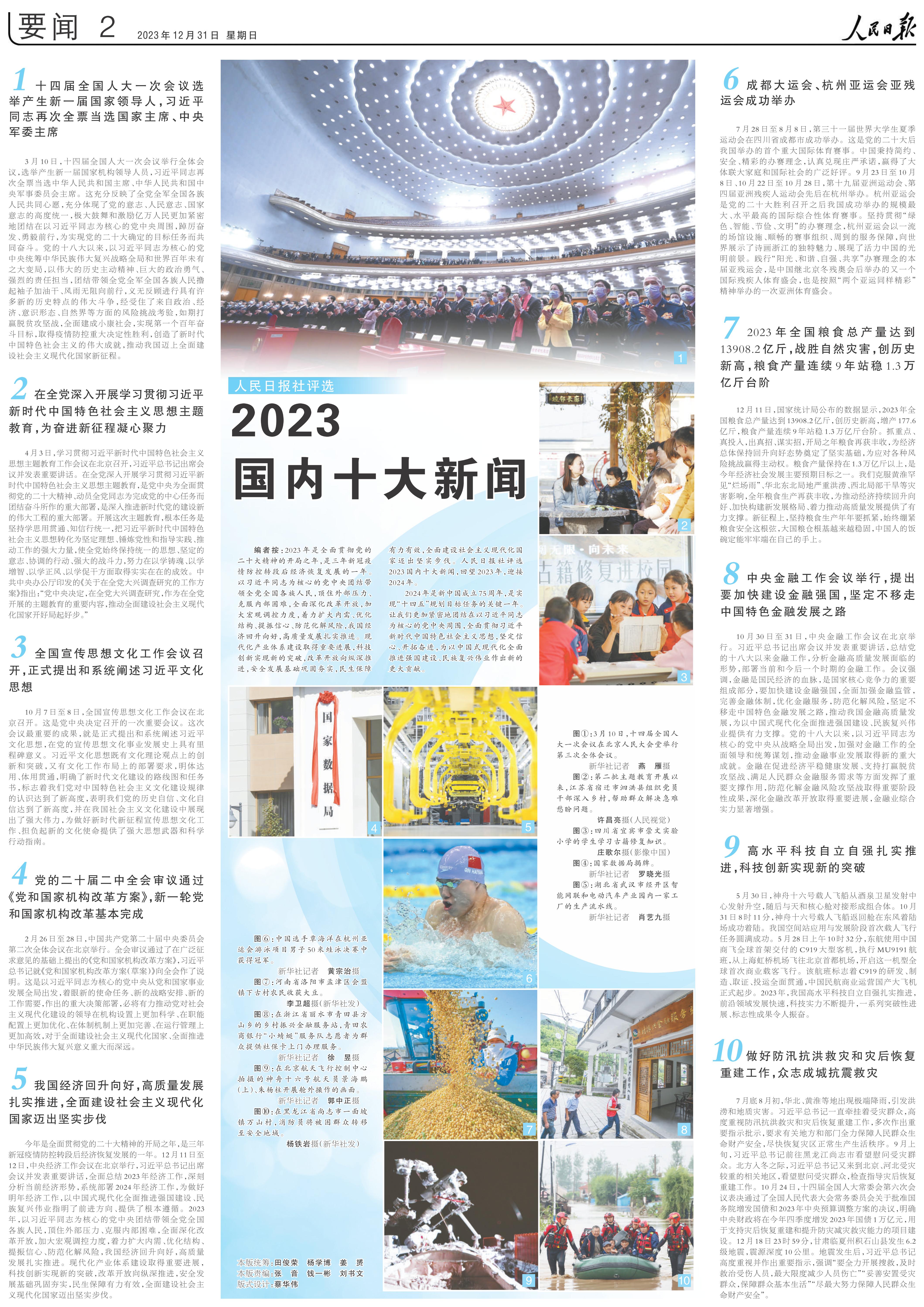 人民日報社評選2023國內國際十大新聞