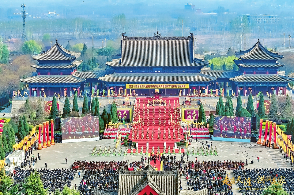 “華人老家”山西洪洞舉辦尋根祭祖大典。洪洞大槐樹景區(qū)供圖