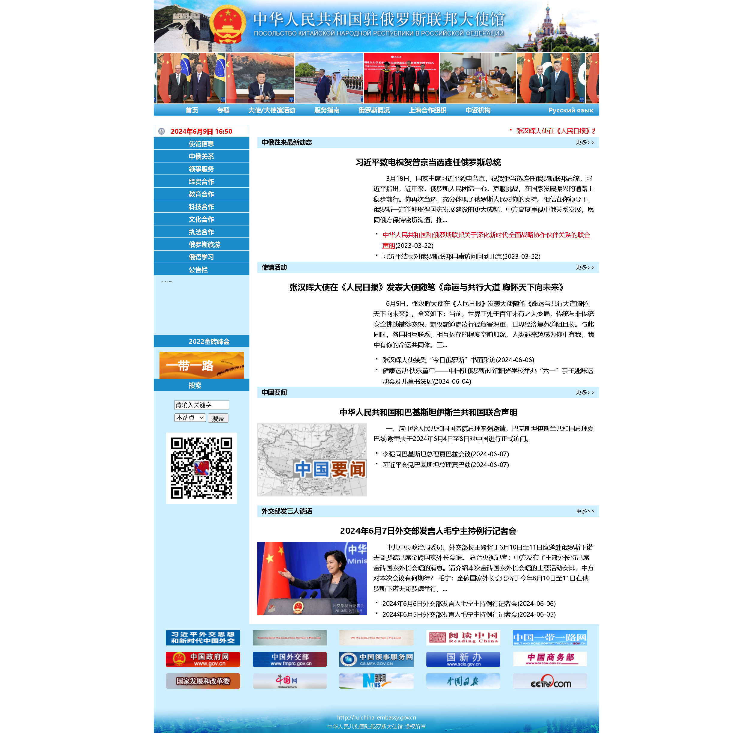 俄羅斯是推動構建人類命運共同體的重要伙伴。去年3月,習近平主席再次當選國家主席后選擇俄羅斯作為首訪國家。今年5月,俄羅斯總統普京在開啟新任期后將中國作為首訪國家。這充分體現中俄關系的高水平和特殊性。兩國元首共同簽署并發表的聯合聲明強調,中方提出的構建人類命運共同體理念和一系列全球倡議具有重要積極意義。
