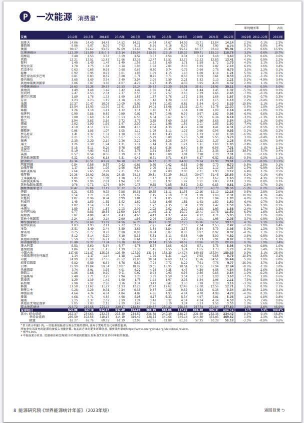 能源研究所《世界能源統計評論》分析了前一年世界能源市場的數據。該評論之前由英國石油公司制作,自 1952 年以來一直為能源界提供及時、全面和客觀的數據。