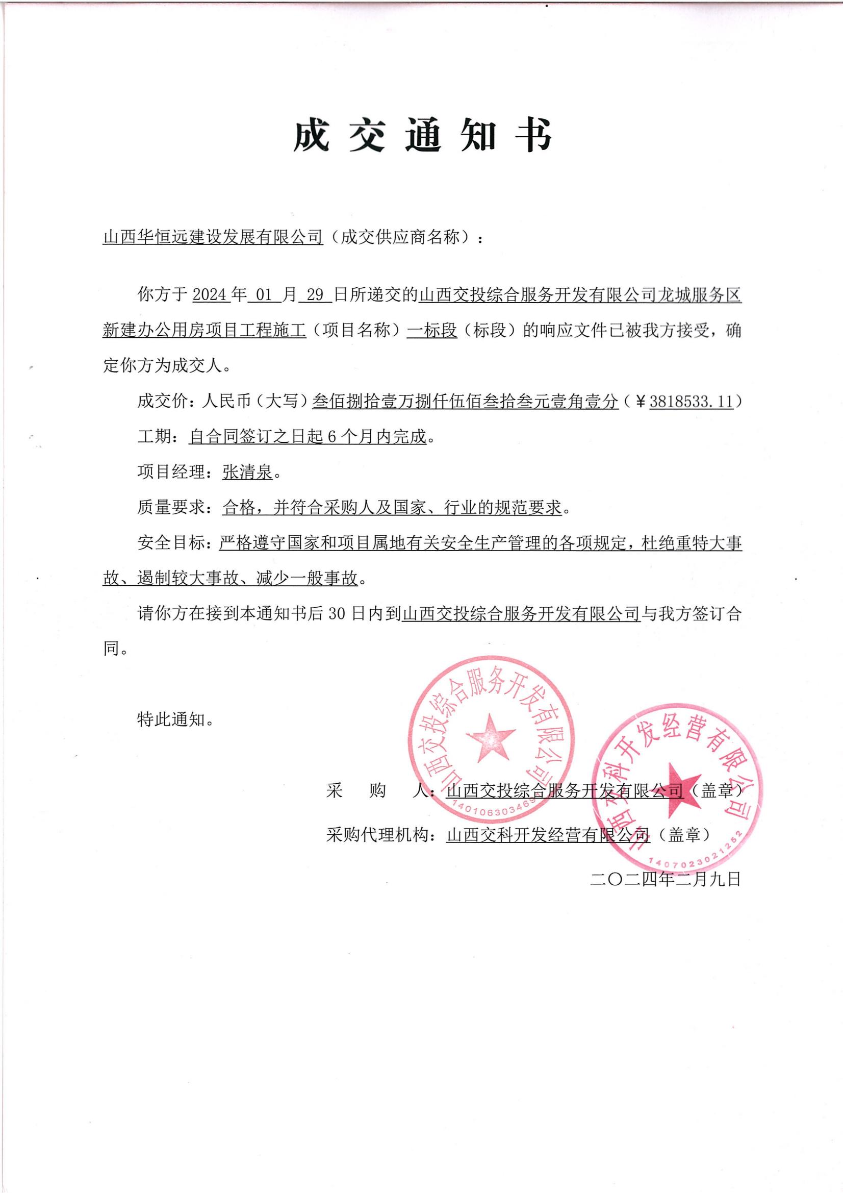 山西交投綜合服務開發(fā)有限公司龍城服務區(qū)新建辦公用房項目工程施工
