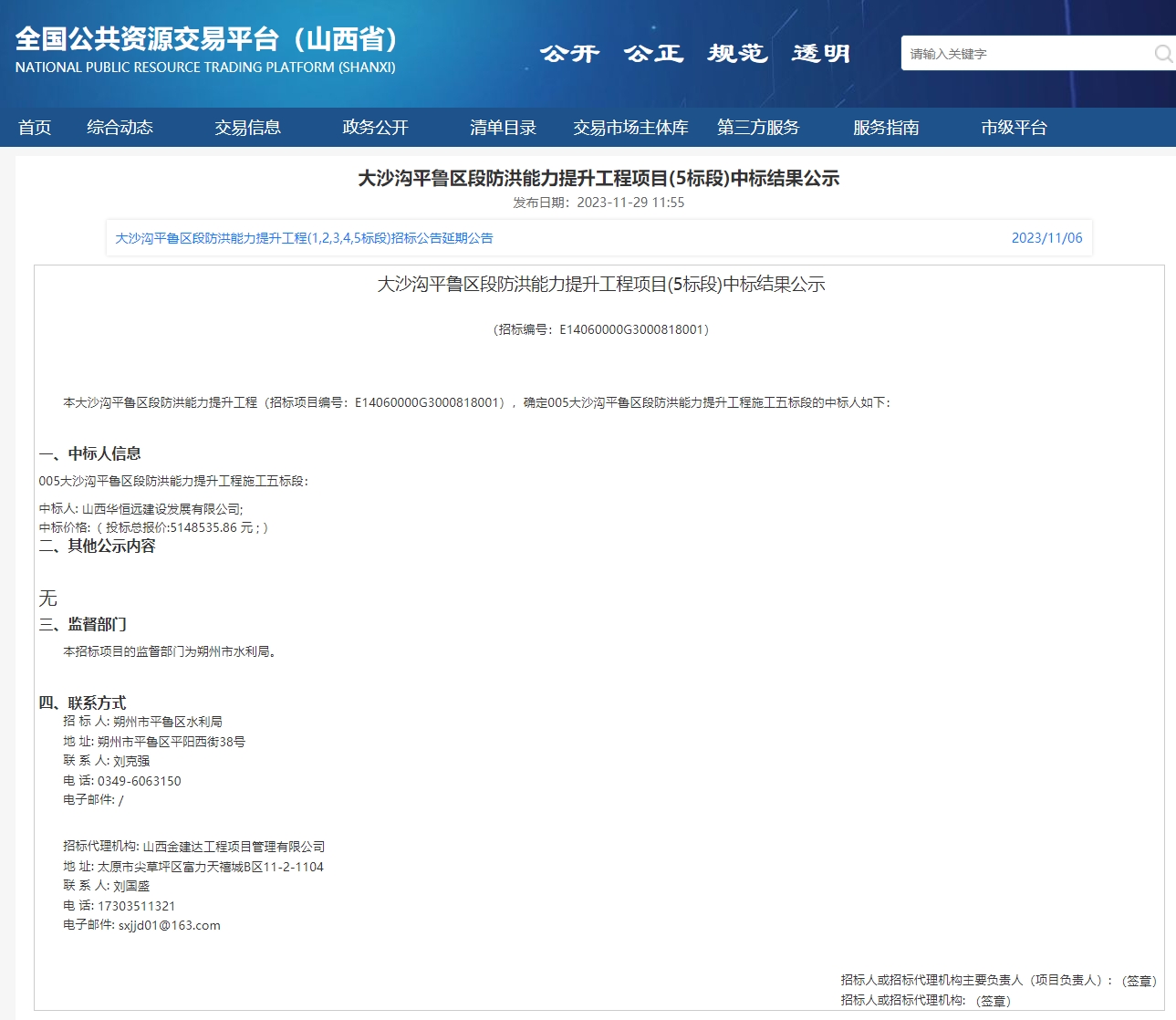 大沙溝平魯區段防洪能力提升工程項目(5標段)