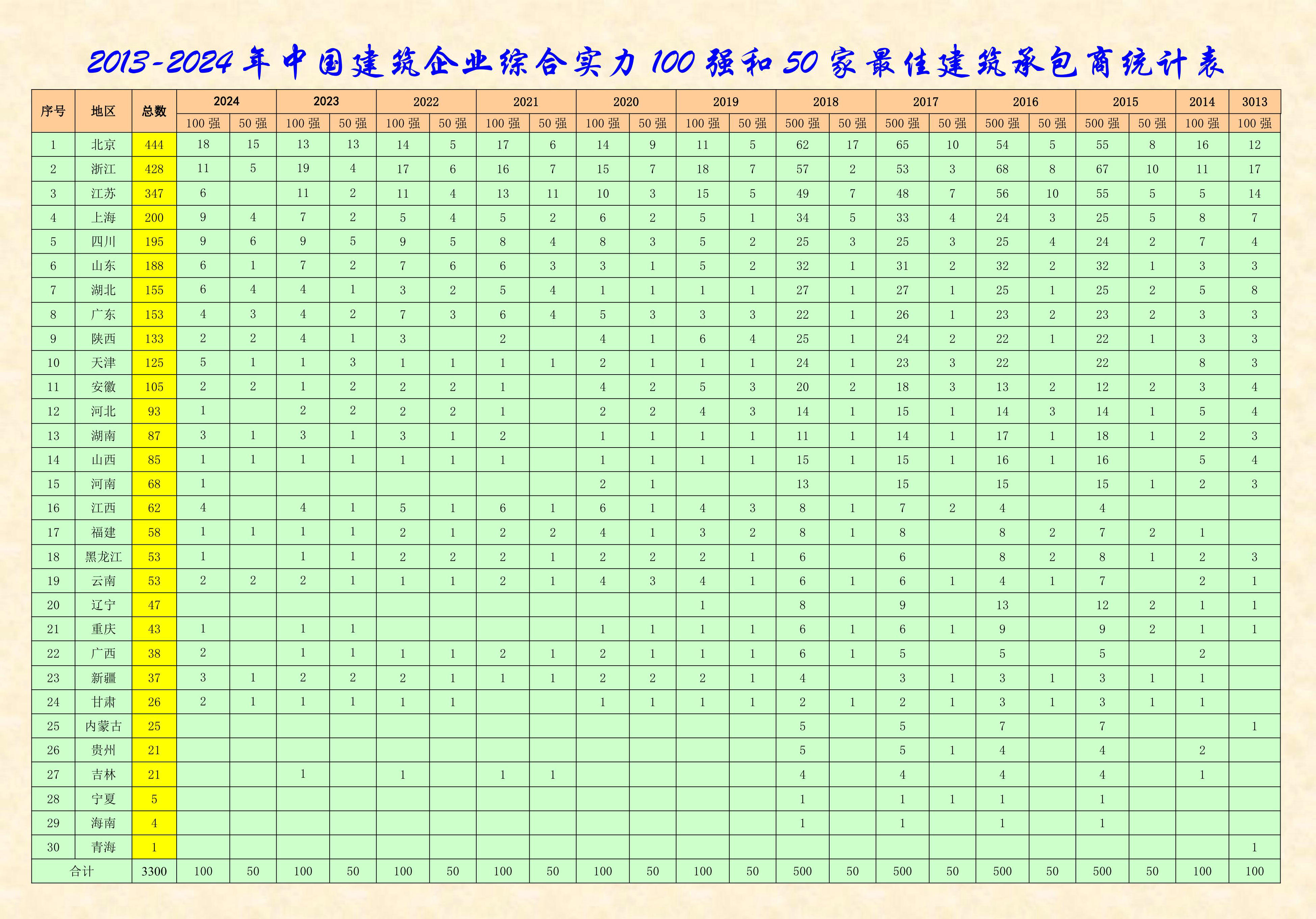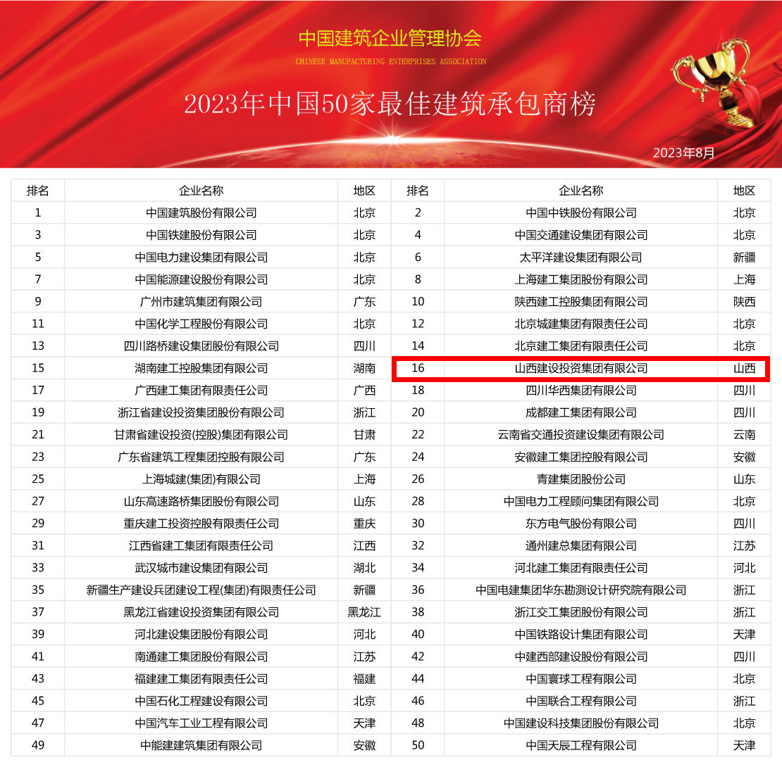 在經濟發展的浪潮中,建筑業始終是國家建設的中流砥柱。近日,由中國建筑企業管理協會隆重發布的“2024年中國建筑業綜合實力100強榜暨中國50家最佳建筑承包商”,這不僅是對建筑企業的一次高度認可,更是為行業發展樹立了新的標桿。