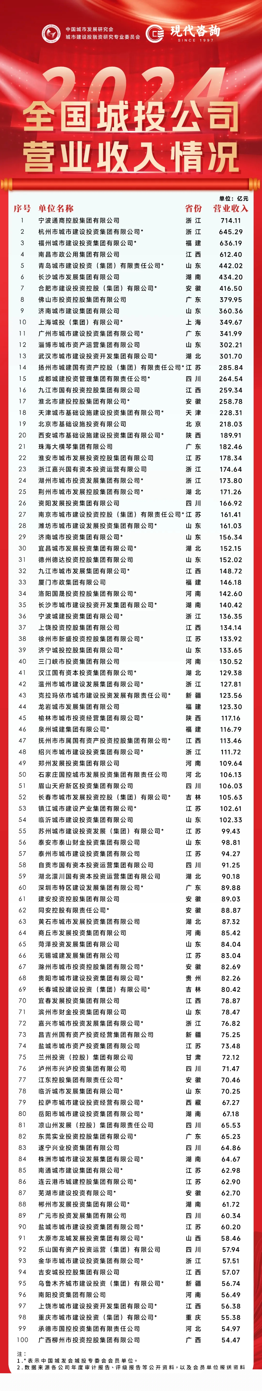 相比于往年發布的百強榜指標,今年新增營業收入指標,以此進一步衡量城投公司業務規模和市場競爭力。隨著城投公司市場化轉型的推進,營業收入的增長和多元化成為轉型成功的關鍵指標,將營業收入納入評價體系, 能夠更全面地反映城投公司的經濟活動成果和市場競爭力,有助于更全面地評估城投公司的財務健康度和盈利能力。