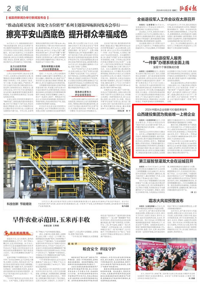 本報(bào)訊(記者晉帥妮)近日,中國(guó)企業(yè)聯(lián)合會(huì)、中國(guó)企業(yè)家協(xié)會(huì)發(fā)布“2024中國(guó)大企業(yè)創(chuàng)新100強(qiáng)”名單,山西建投集團(tuán)成為我省唯一上榜企業(yè),位列第85位。