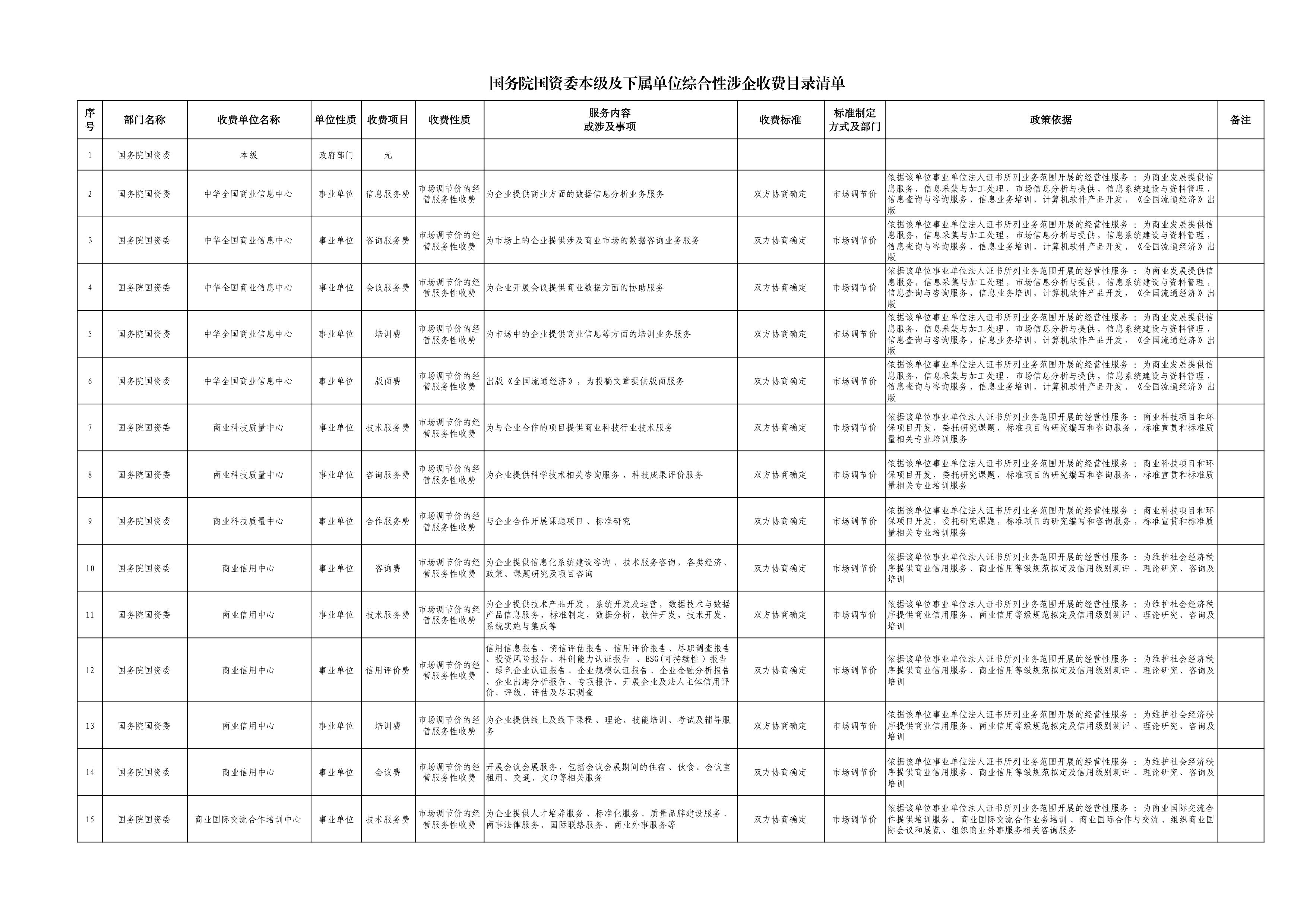 【行業動態】國務院國資委本級及下屬單位綜合性涉企收費目錄清單