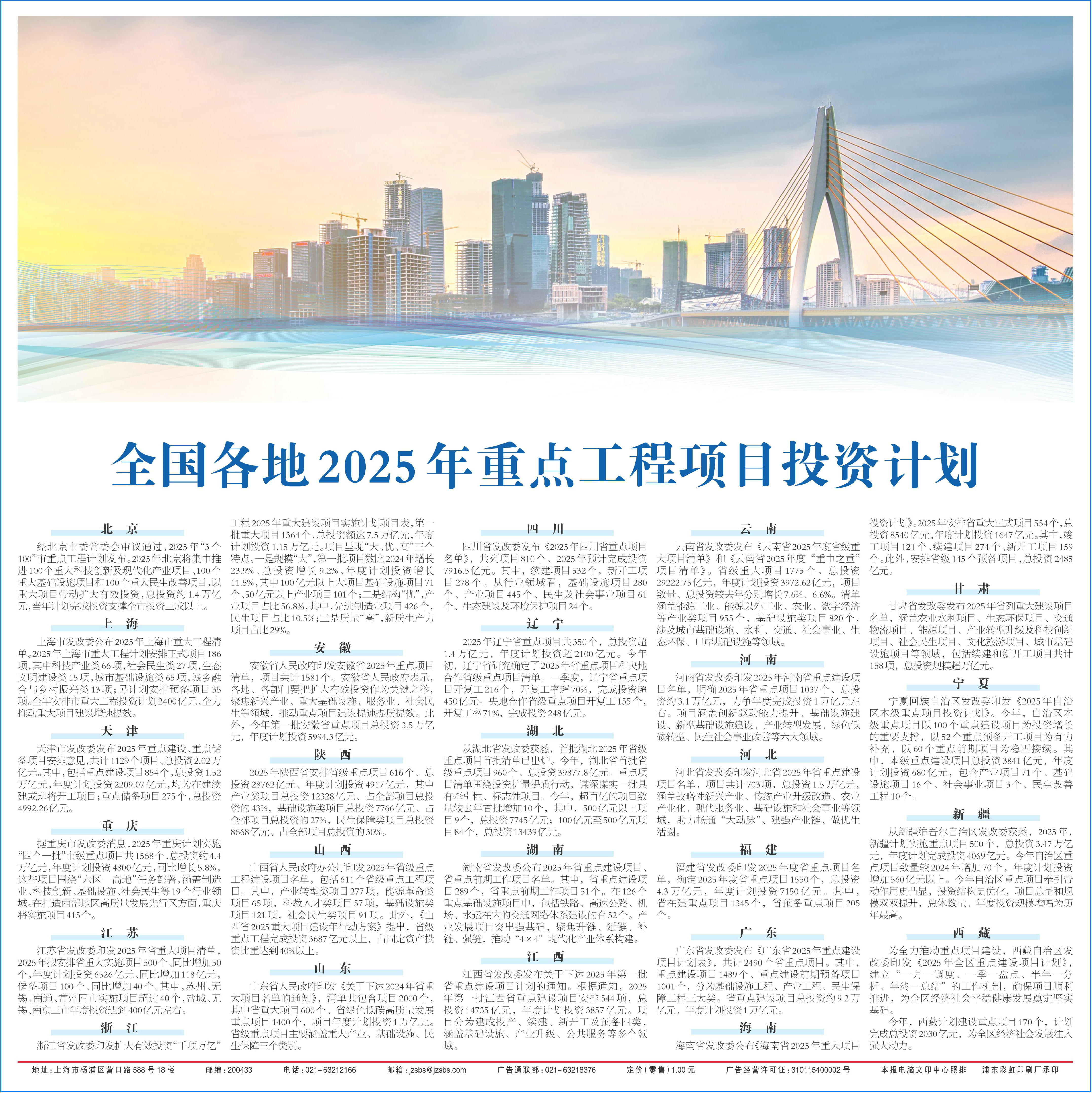 經北京市委常委會審議通過,2025年“3個100”市重點工程計劃發布。2025年北京將集中推進100個重大科技創新及現代化產業項目、100個重大基礎設施項目和100個重大民生改善項目,以重大項目帶動擴大有效投資,總投資約1.4萬億元,當年計劃完成投資支撐全市投資三成以上。