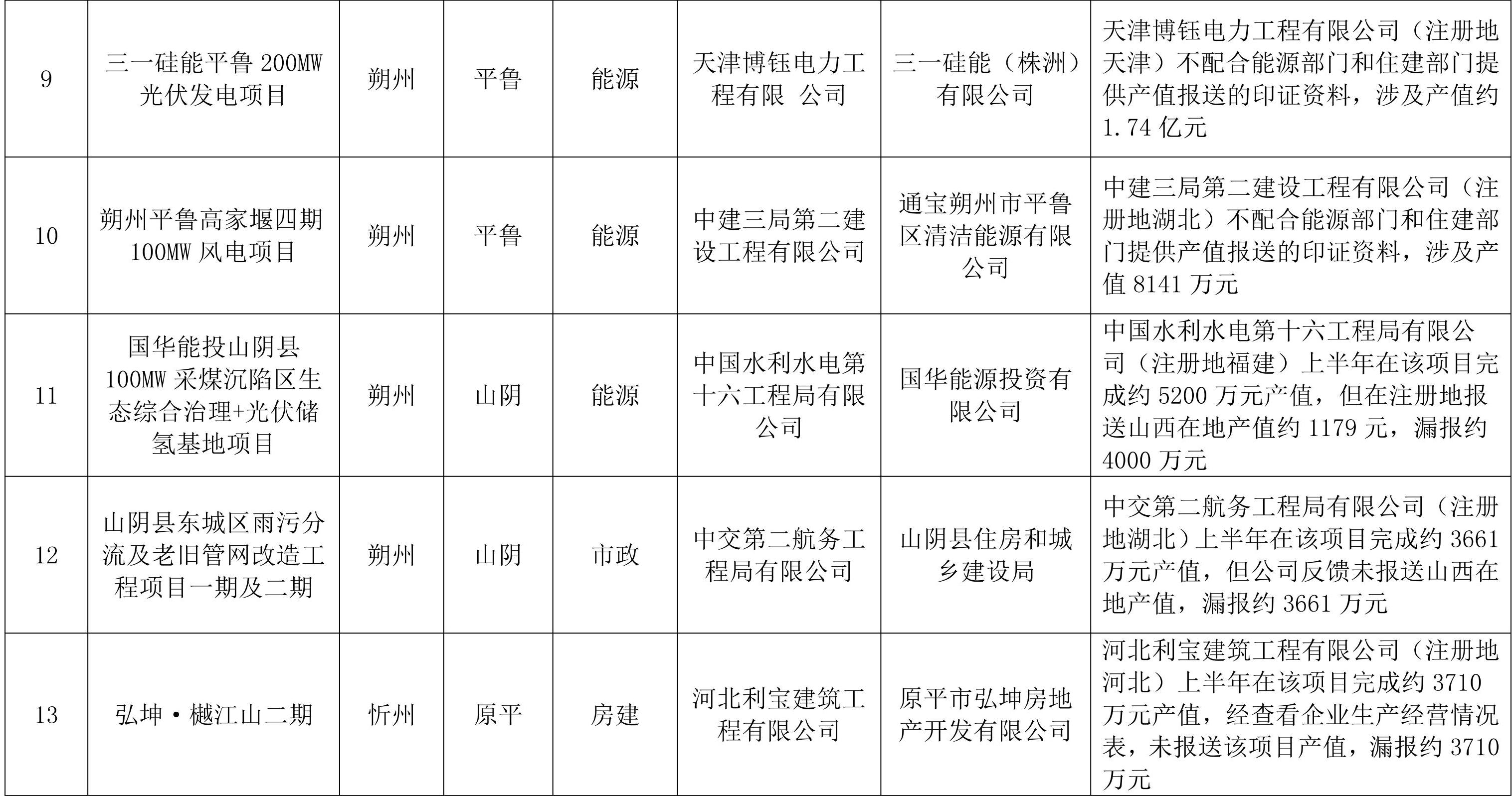 按照安排,省建筑業運行工作專班于2025年7月28日至8月8日開展了全省建筑業運行情況督查檢查工作,實地核查了11個市38個縣(市、區)和山西轉型綜合改革示范區的120個在建項目。督查中發現部分項目施工企業存在產值漏報、數據造假、不配合行業部門提供印證資料等問題,違反了《中華人民共和國統計法》第八條“國家機關、企業事業單位和其他組織以及個體工商戶和個人等統計調查對象,必須依照本法和國家有關規定,真實、準確、完整、及時地提供統計調查所需的資料,不得提供不真實或者不完整的統計資料,不得遲報、拒報統計資料”規定,無法真實反映我省建筑業在地產值情況,給國家和我省經濟造成損失。
