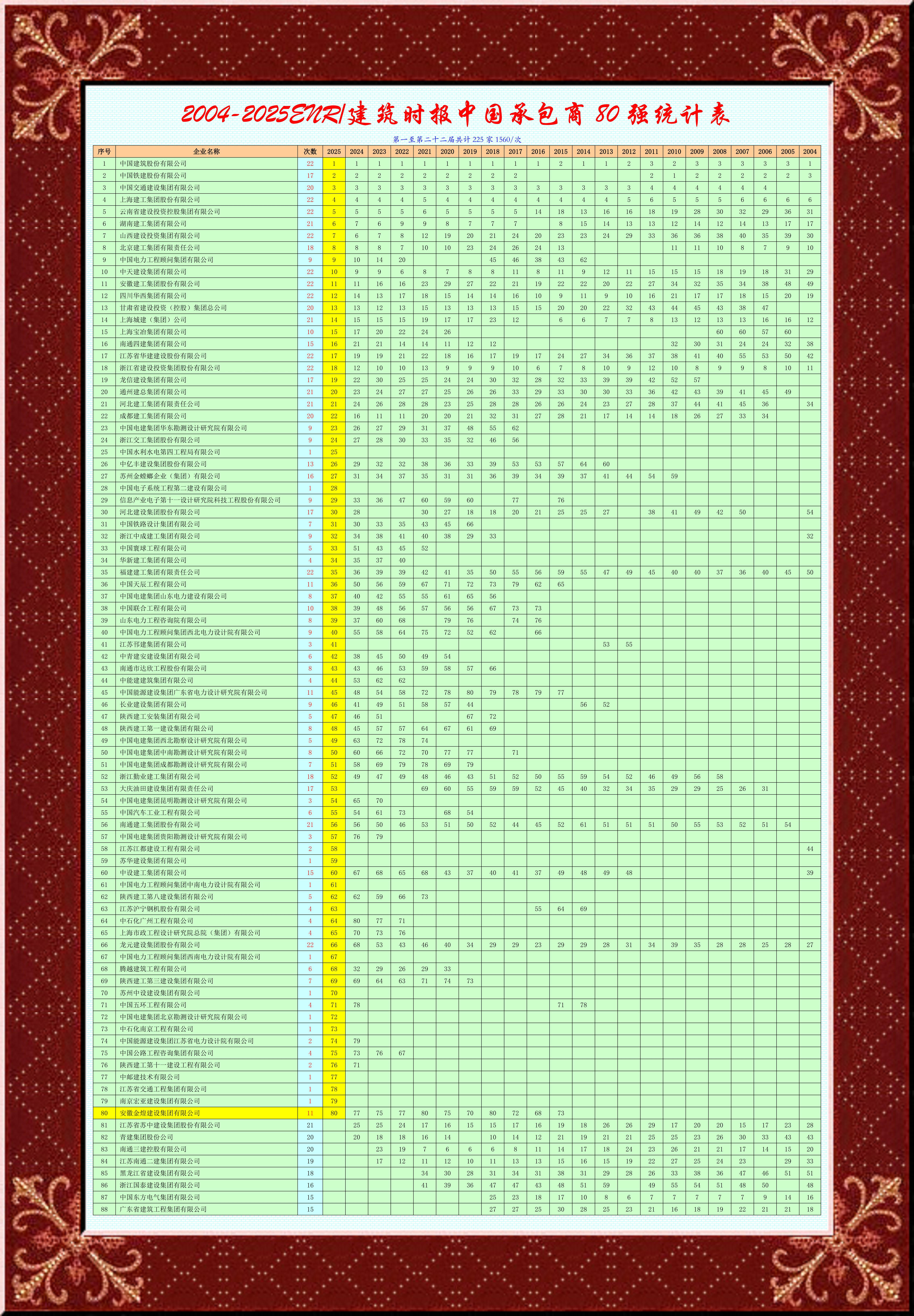 9月26日,美國《工程新聞記錄》(ENR)與中國《建筑時報》聯合發布2025年度“中國承包商80強”與“工程設計企業60強”榜單。山西建投憑借穩健的經營表現與全產業鏈服務能力,蟬聯雙榜,分別位列“中國承包商80強”第7位、“工程設計企業60強”第48位。