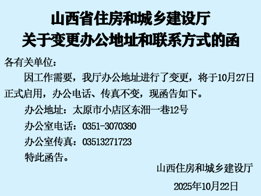 【行業動態】山西省住房和城鄉建設廳關于變更辦公地址和聯系方式的函