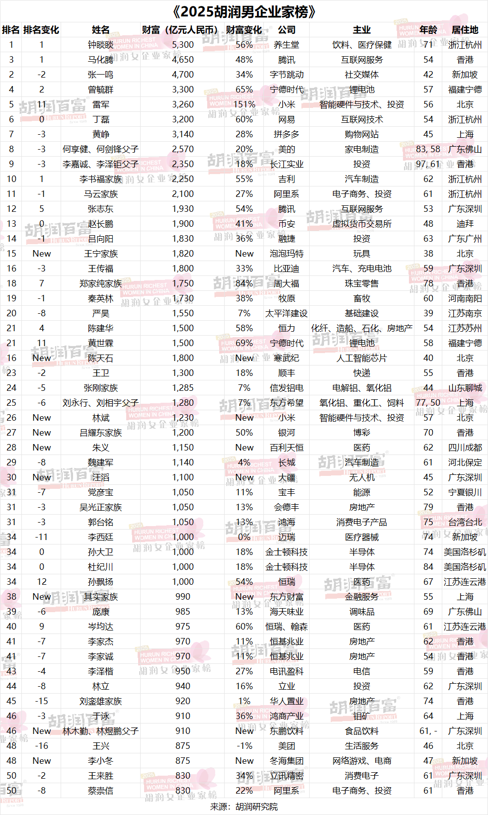 附錄:《2025胡潤男企業(yè)家榜》