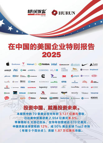 (2025年11月3日,上海)提供有質量的榜單與調研的胡潤研究院今日發布《2025在中國的美國企業特別報告》(以下簡稱“報告”)。本報告旨在追蹤美國企業在中國市場的表現及其全球營收情況,以評估中國市場對美國企業的重要性及變化趨勢。這是胡潤研究院第二次發布美國企業專題報告。