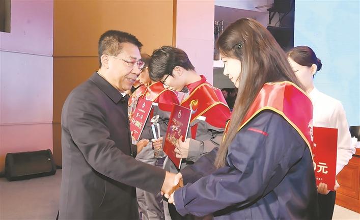 圖為市委書記孫大軍為“呂梁技術(shù)狀元”稱號獲得者頒獎。 記者 王益煒 攝