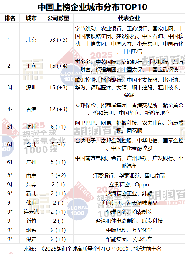 胡潤研究院發布《2025胡潤全球高質量企業TOP1000》