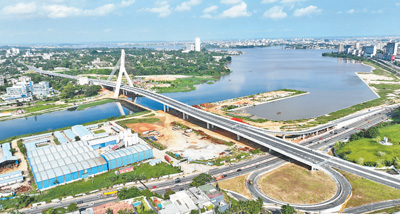 近年來,中國企業為提升非洲基礎設施水平、加速互聯互通和一體化進程、促進當地經濟社會發展和民生改善等作出了積極貢獻。圖為中國路橋工程有限責任公司承建的科特迪瓦阿比讓科科迪斜拉橋項目。 |