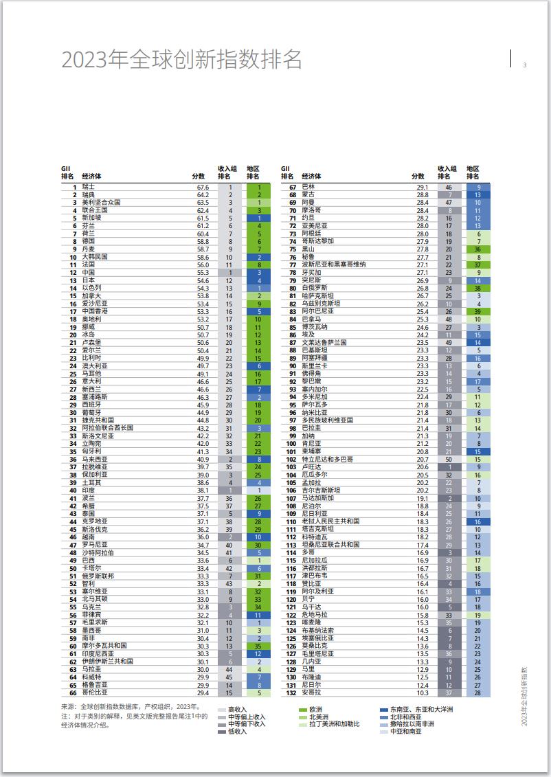 2023全球創新指數排名