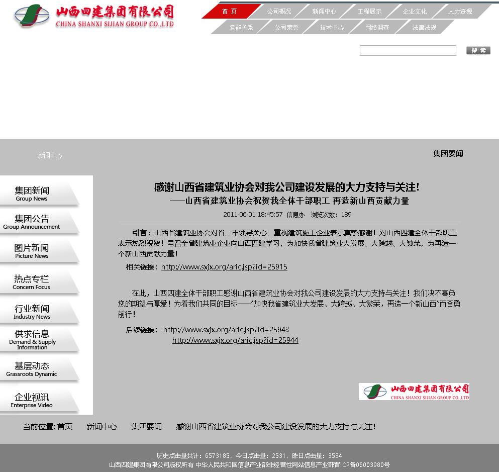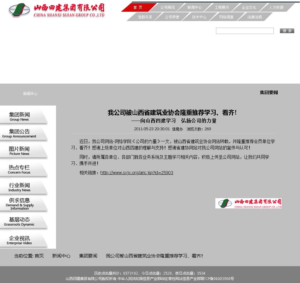山西四建集團有限公司作為山西建筑業行業標桿,關注他們是我幾十年的習慣,一直把這個企業的靈魂文化看成是行業的風向標和榜樣。尤其特別關注他們每年的新春賀詞,我在建協負責網站時,多次表揚他們,鼓勵他們,支持他們!你進他們的網站看看,現在怎么樣,存在什么問題,如何解決?你有什么感悟,有什么高明的真知灼見呢?