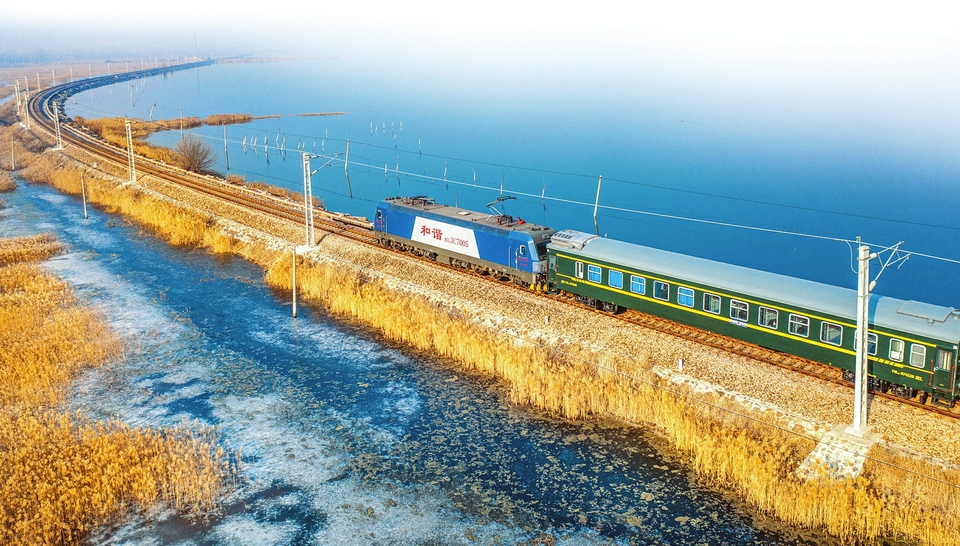 日前,運城“水上列車”爆紅。列車經過硝池灘和伍姓湖時,兩側是一望無際的碧藍色水面,車在水中走、人在畫中游的場景,仿佛置身動漫《千與千尋》同款“水上列車”之中。