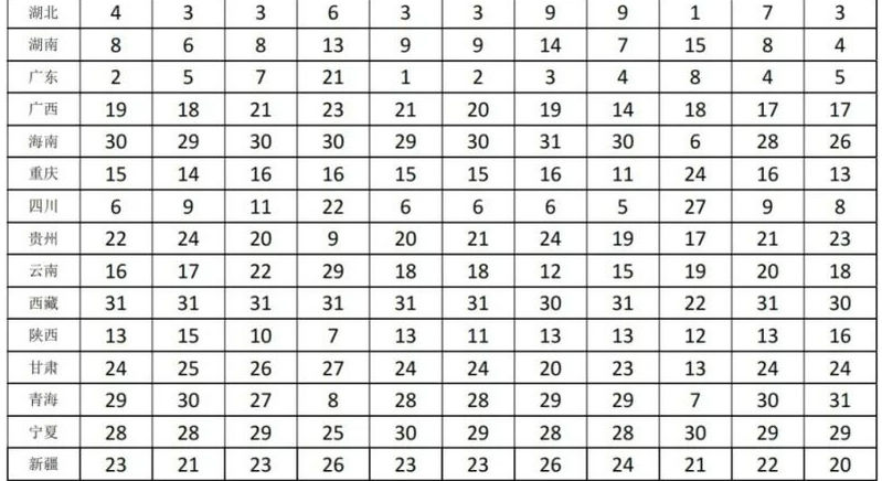 主要指標增速在全國的位次