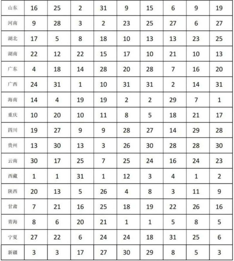 主要指標總量在全國的位次