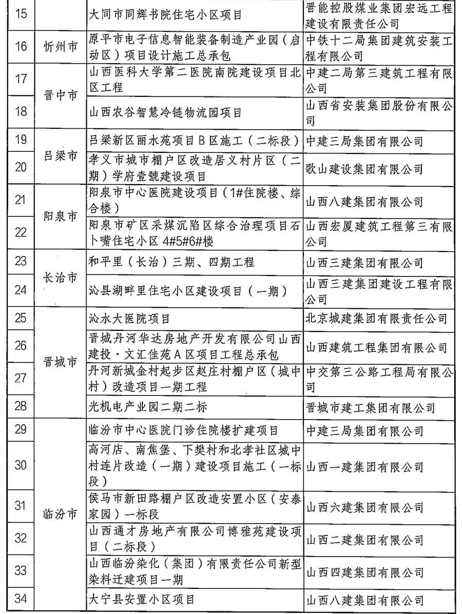根據《山西省住房和城鄉建設廳建筑施工安全生產標準化創建和考評實施細則》,經企業自主申報,省廳組織專家資料審查、現場核查,評定山西一建集團有限公司等14個企業為2023年度“省級安全生產標準化示范企業”,評定濱河東路南延二期工程施工一標段等38個項目為2023年度第二批“省級安全生產標準化示范項目”,且經公示無異議,現將名單予以公布。