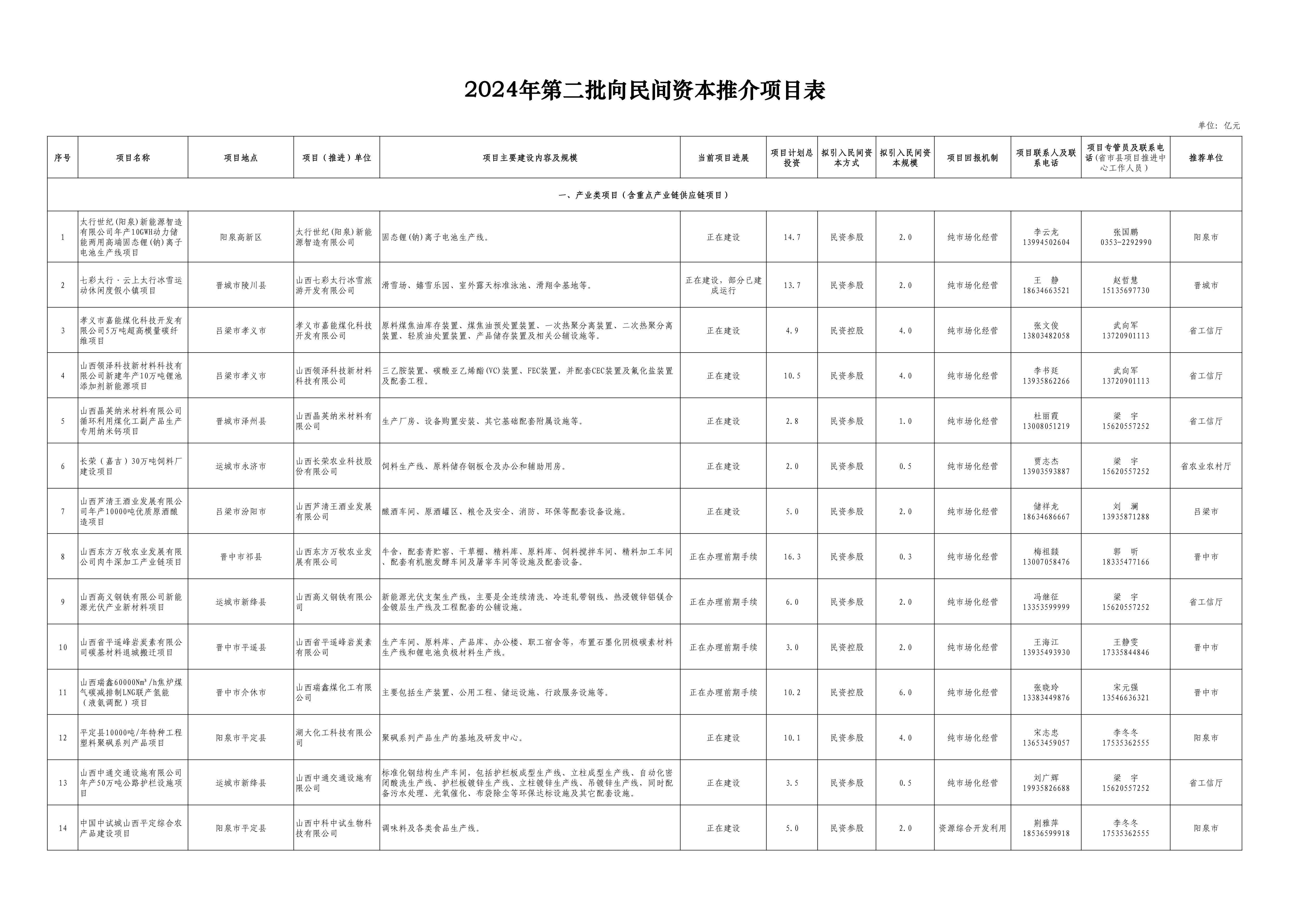 本報太原6月28日訊(記者王蕾)日前,省發展改革委發布了2024年第二批向民間資本推介項目名單,共60個,計劃總投資533.3億元,計劃引入民間資本257億元。