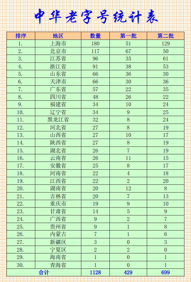 中華老字號名單
