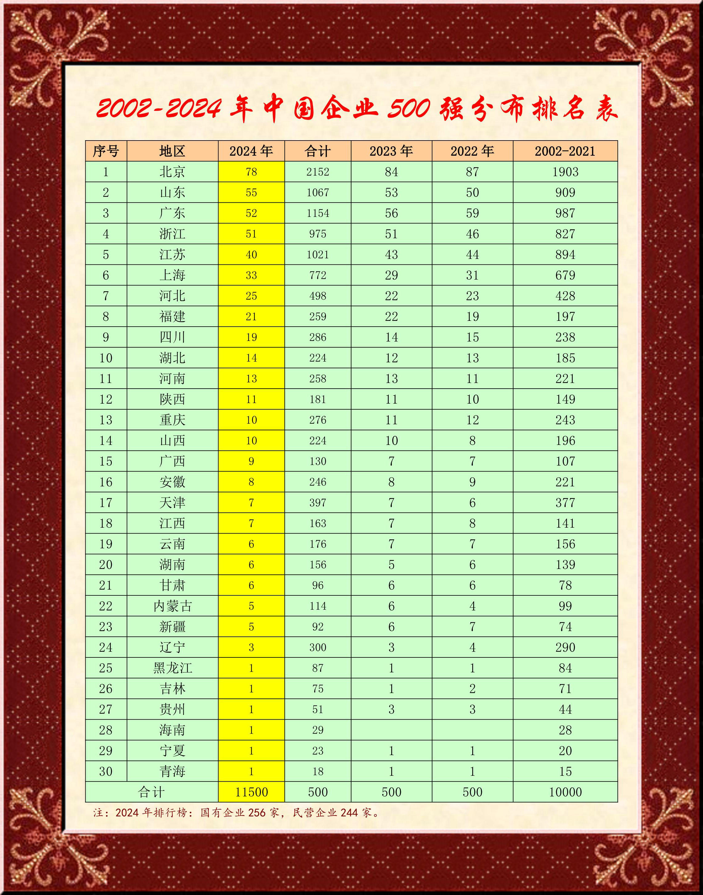 2002-2024年中國(guó)企業(yè)500強(qiáng)前10名