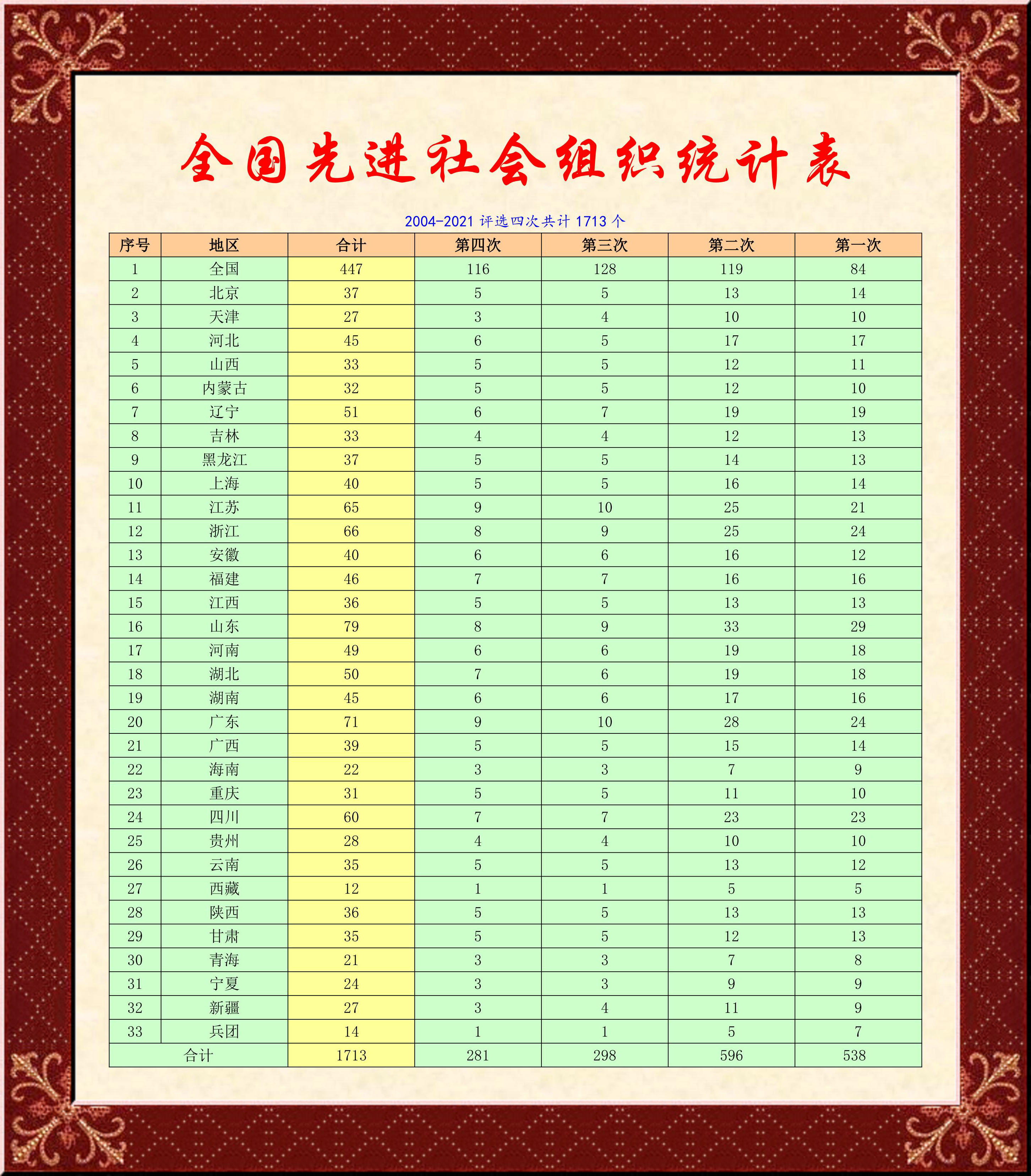 為充分發揮先進模范作用,進一步弘揚社會組織正能量,激勵廣大社會組織在實現第二個百年奮斗目標新征程中建功立業,經全國評比達標表彰工作協調小組辦公室審核同意,民政部啟動了第四次“全國先進社會組織”評選表彰活動。經推薦審核、意見征求、社會公示等程序,民政部決定,授予中國電力企業聯合會等281個社會團體、社會服務機構和基金會“全國先進社會組織”稱號。希望受到表彰的先進社會組織珍惜榮譽,再接再厲,不斷取得更加優異的成績。各級社會組織登記管理機關要加強跟蹤監督,推動受表彰社會組織高標準治理、高質量發展,確保持續發揮示范引領作用。