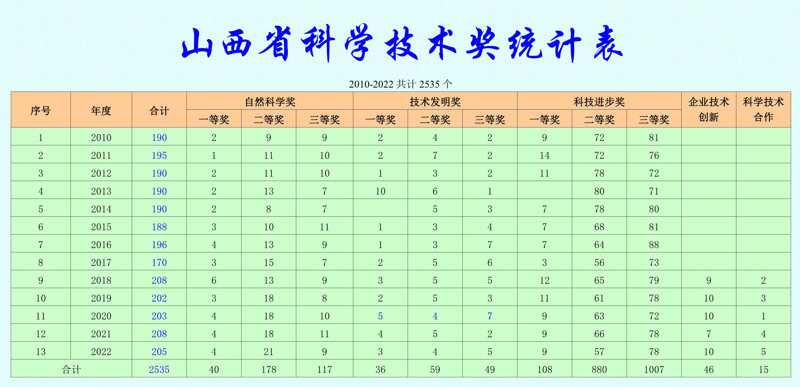 2010-2022山西省科學技術獎名單