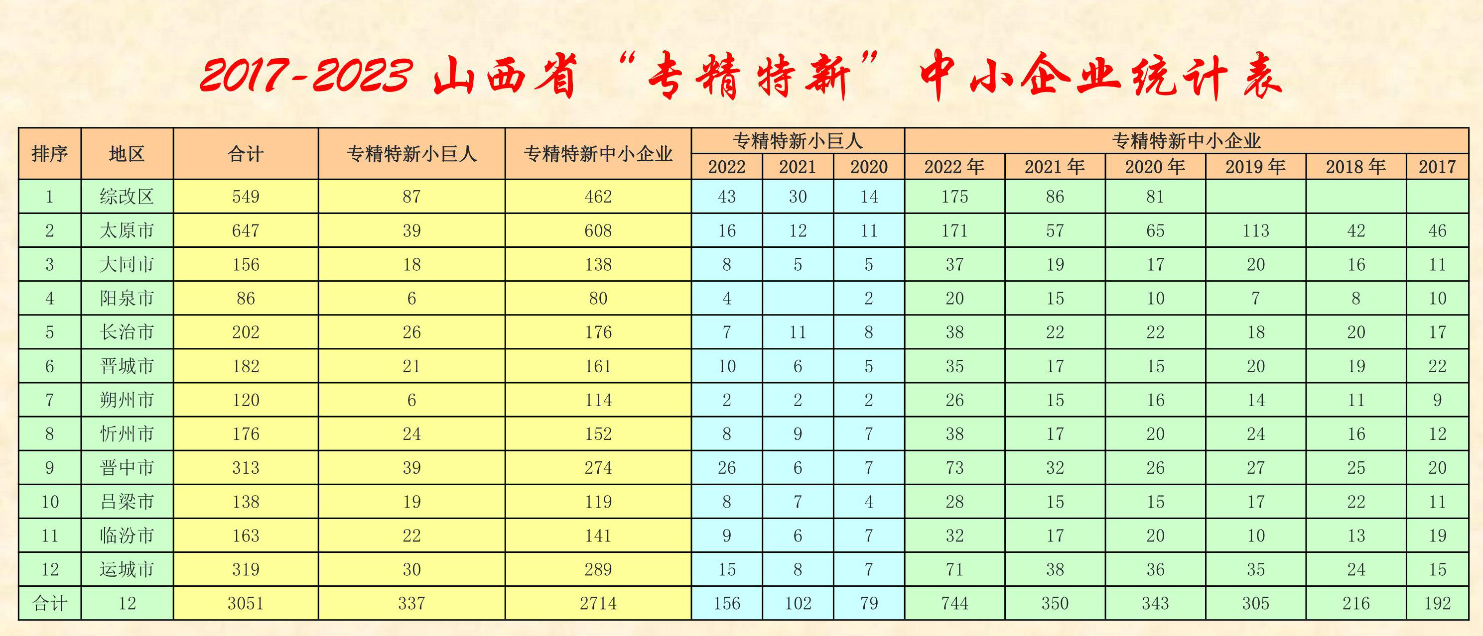 歷年山西省專精特新中小企業名單