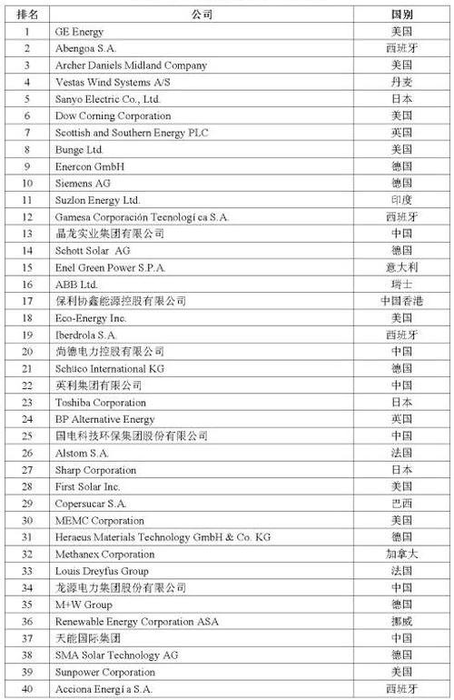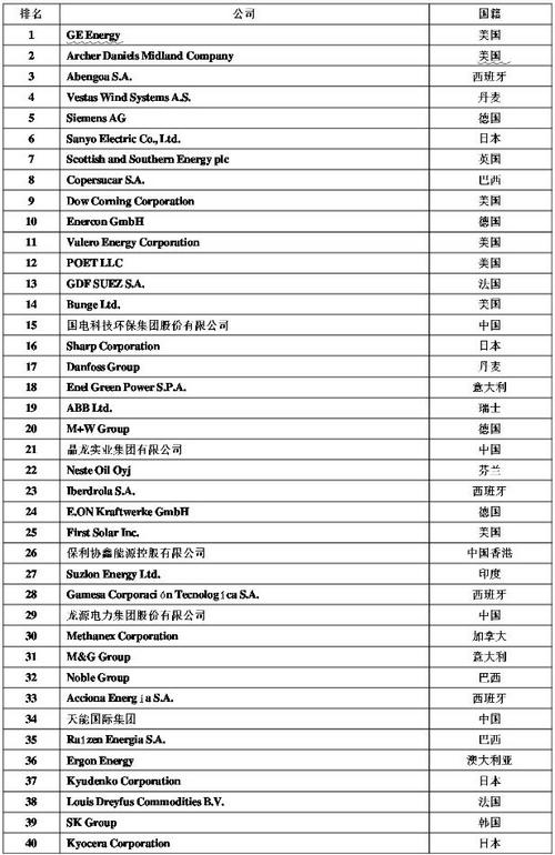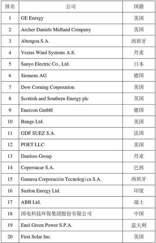 2012年全球新能源企業500強