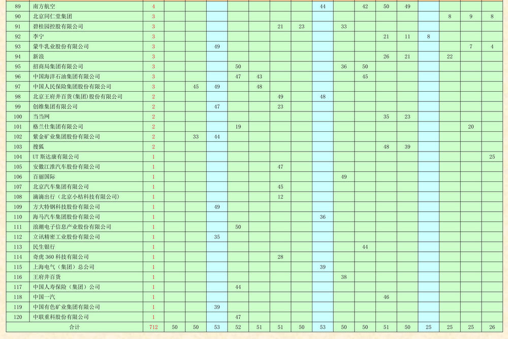 702 內蒙古伊利實業集團股份有限公司 食品、飲料 39 2022
