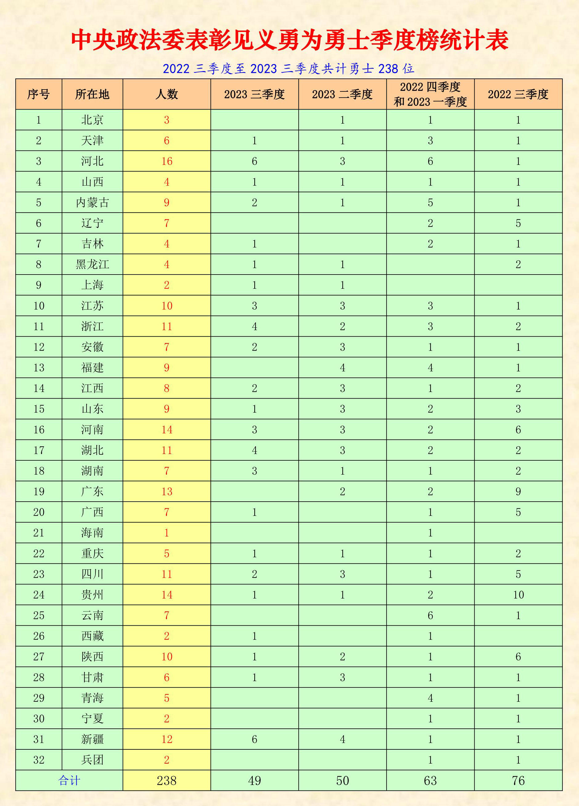 2022年第四季度和2023年第一季度見義勇為勇士榜名單
