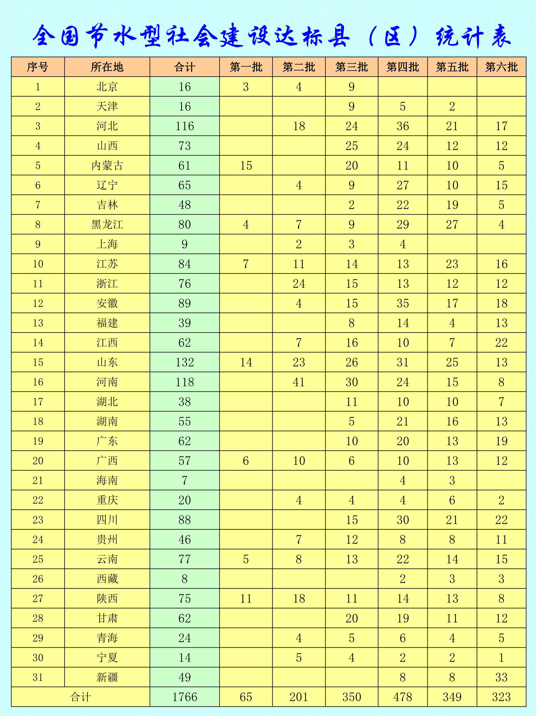 水利部關于公布第六批節水型社會建設達標縣(區)名單的公告