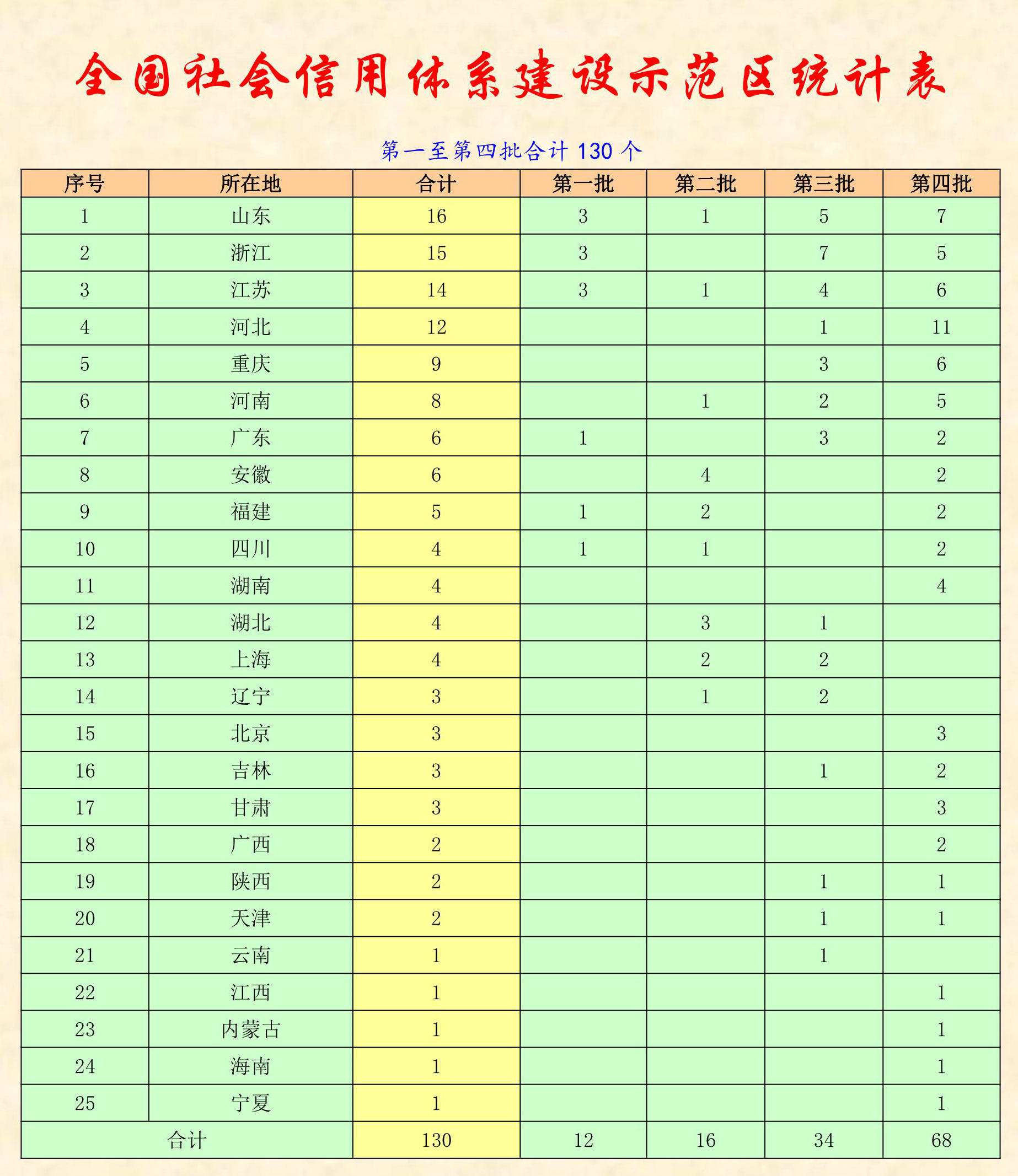 第一批至第四批共計130個