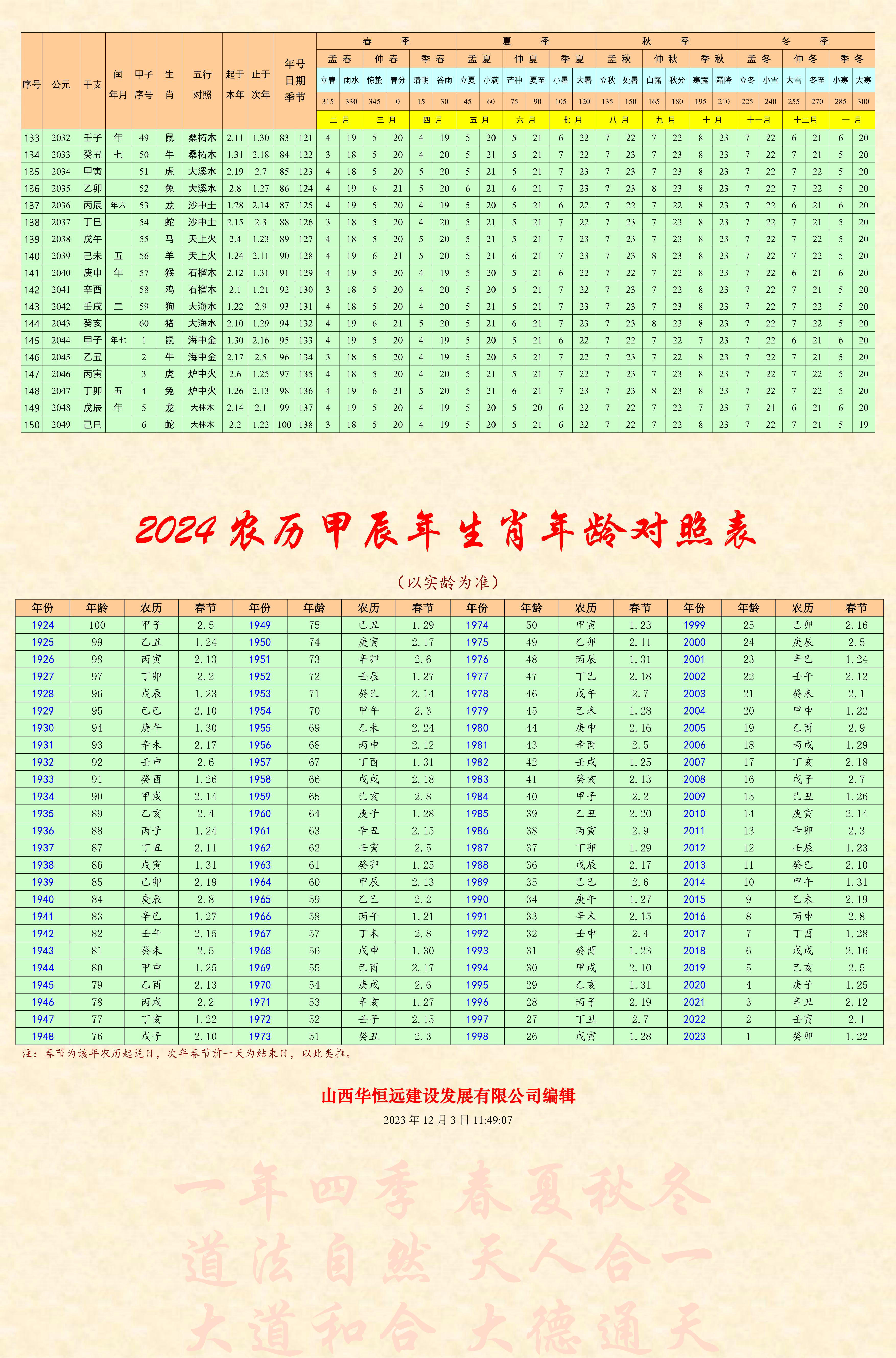 【行業資料】2024版150年二十四節氣日期表